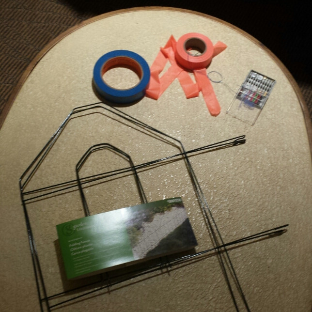 So on to Lowe’s hardware store.  We found some parts that we could alter to look like a bird cage.  Add some orange emergency ribbon.  A little blue tape and an orange bungee cord and there you have it.  An FAU Owl in an orange and blue cage.  Hanging under our tent at the tailgate!  Our FAU Effigy:  Georgette!